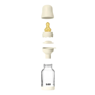 Bibs Glass Baby Boheme Bottle Round Latex Size1 120ml Slow Flow Ivory