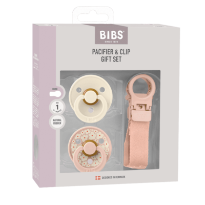 Bibs Soother & Loop Gift Set – Natural Rubber – Size 1 – Blush