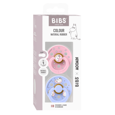 Bibs Colours Soother – Natural Rubber – 2 pack – Size 1 – X Moomin Baby Pink
