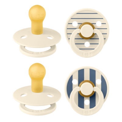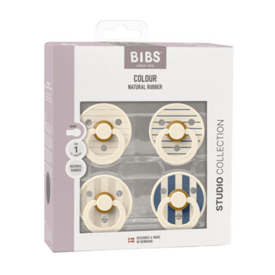 Bibs Soother Studio 4 pack – Natural Rubber – Size 1 – Pin Ivory Vanilla /Steel Blue