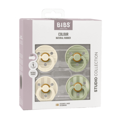 Bibs Soother Studio 4 pack – Natural Rubber – Size 1 – Pin Ivory Vanilla /Sage