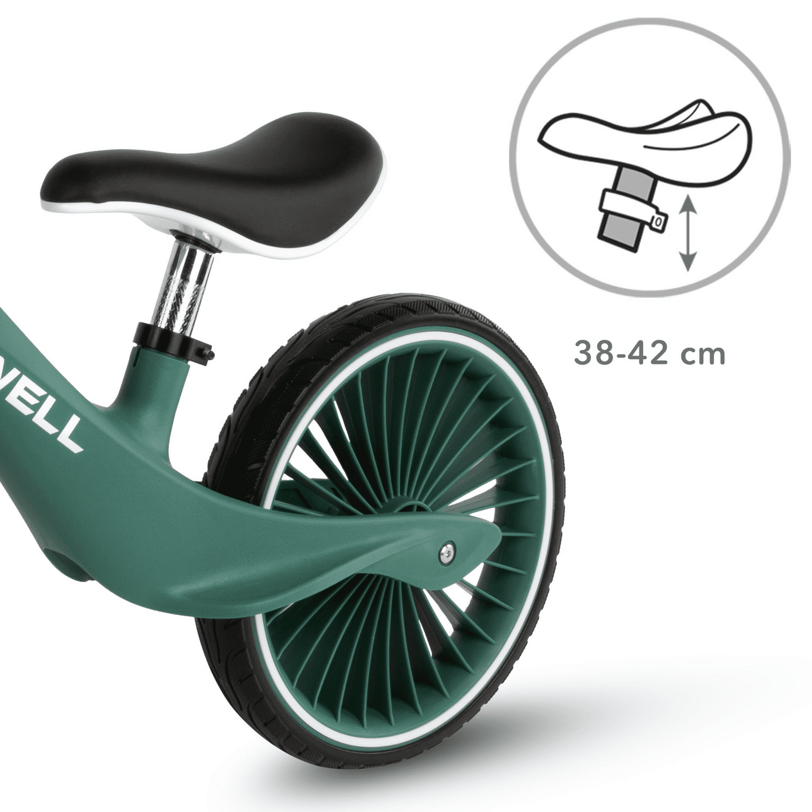 The ergonomic saddle with soft padding ensures high comfort while riding, and the height adjustment allows the Kidwell NIX bike to grow with your child, providing several years of exciting fun.