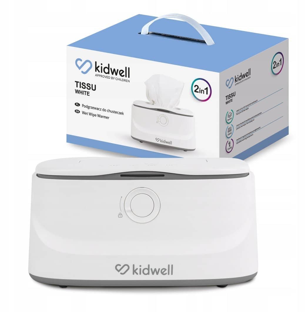 Kidwell Tissu is a new innovation in baby care. The large internal chamber holds up to 100 wipes – this capacity will allow you to use most wet wipes packs available on the market. Thanks to its design, the Tissu protects wet wipes from drying out. The wet wipes are kept moist by a heating plate located in the lid – this solution allows only the top layer of wipes to be heated. The Tissu offers three heating levels. With a single button, you can set the desired temperature – 50°C, 55°C, or 60°C.