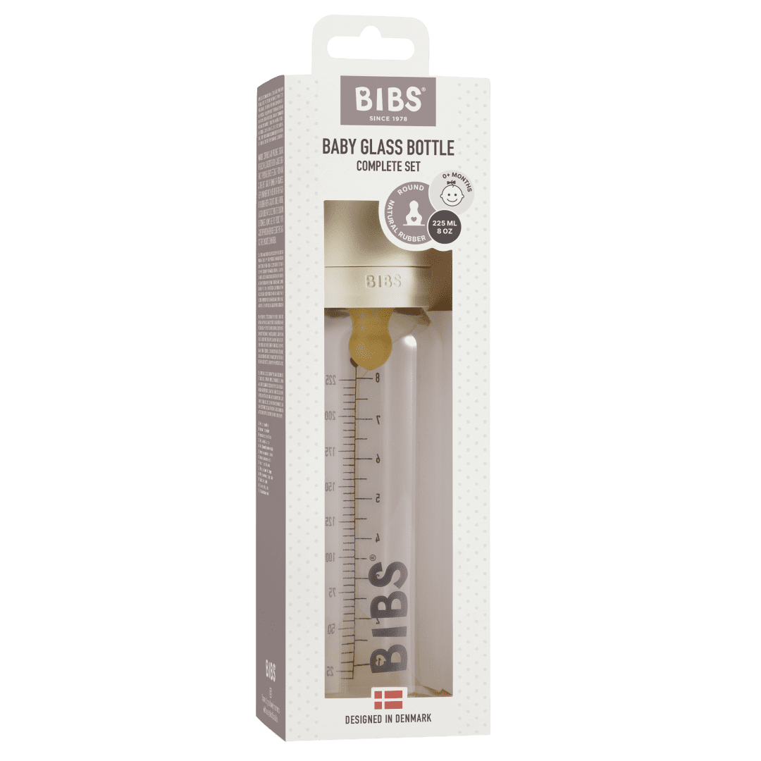 Bibs Baby Glass Bottle Round Latex 1 pk 240ml Medium Flow – Ivory