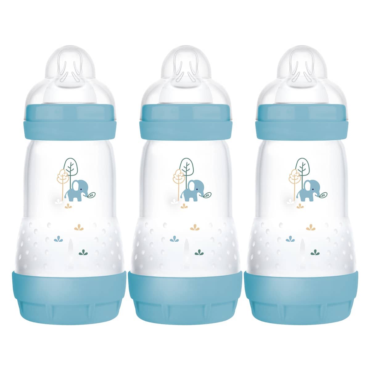 Every feature of MAM’s anti-colic bottles is designed to make feeding time as easy as possible for baby and for parent, from teat to base and from shape to materials. The patented vented base of the MAM anti-colic bottle ensures that babies can drink calmly and relaxed. The ventilation holes in the base regulate pressure balance and airflow and as the bottle ventilates via the bottom, milk flows undisturbed without air bubbles feeding without interruption. Self sterilising in 3 minutes: safe and so practical Fill with 20ml of water Heat for 3 min. in the microwave (500-1000 Watt) Bottle teat fits all MAM Bottles and the Trainer+. Further instructions for use inside. Please retain instructions for future use.