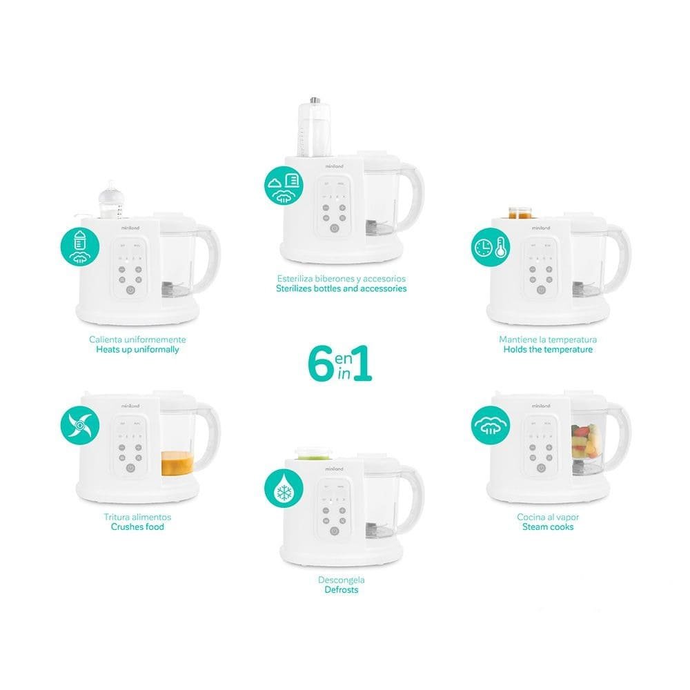 • Warms baby bottles and jars • Sterilizes baby bottles • Steams food • Maintains the temperature of baby bottles and jars • Crushes food • Defrosts bottles and jars