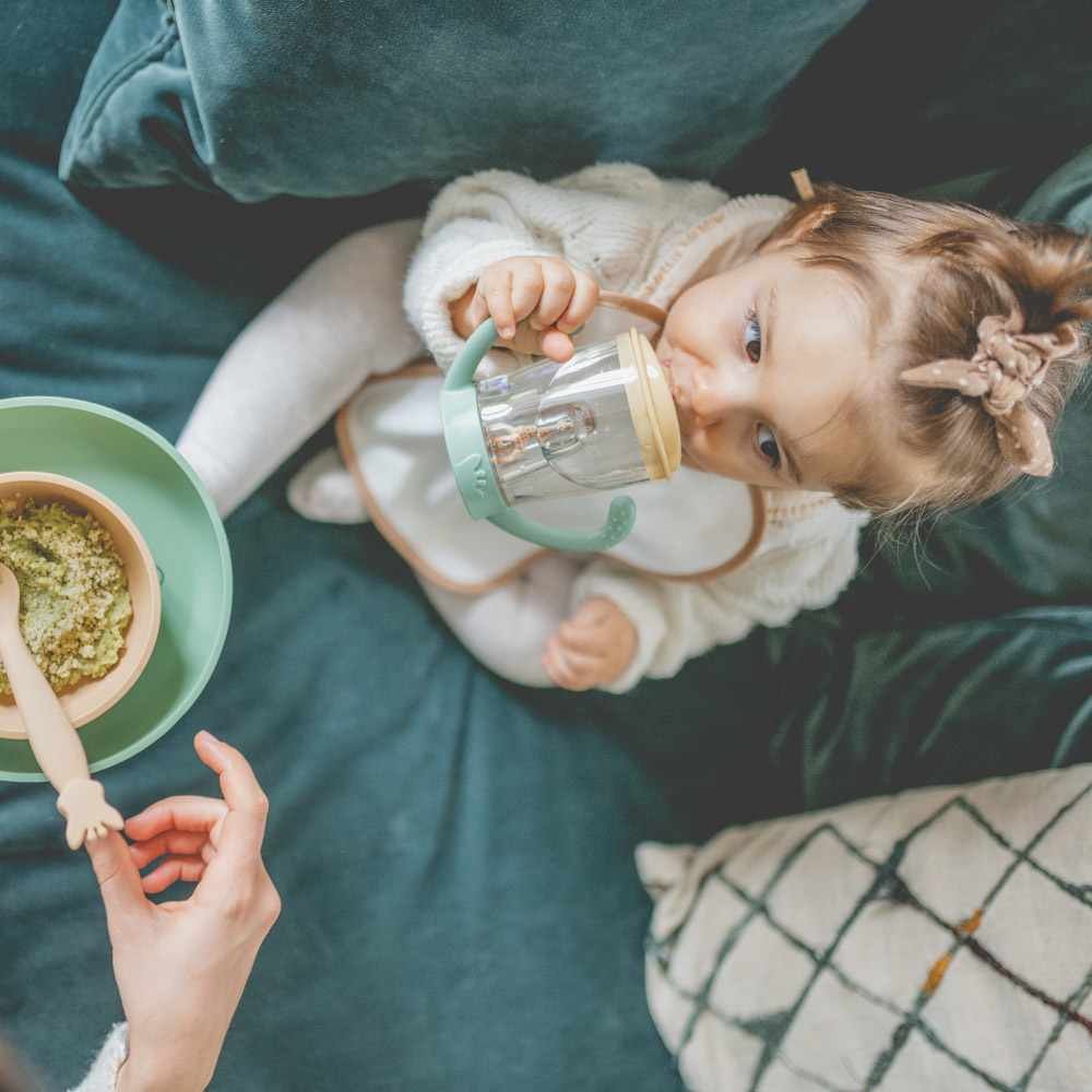 The non-spill system with valve allows Baby to drink without dripping and the lid ensures perfect hygiene.
