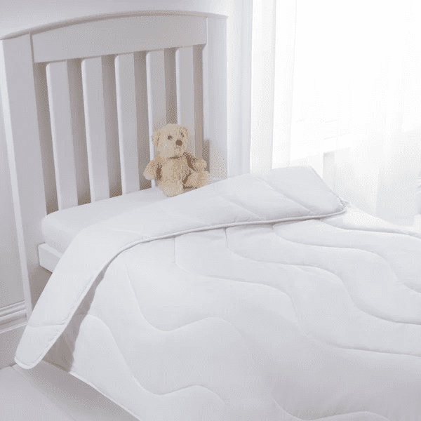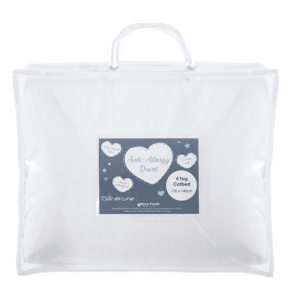 This 4 tog wool-filled duvet from Clair De Lune is ideal for use with a cot bed. It features a 100% cotton cover combined with a 100% wool filling, making this a natural and breathable duvet that will give your little one a comfortable night’s sleep.