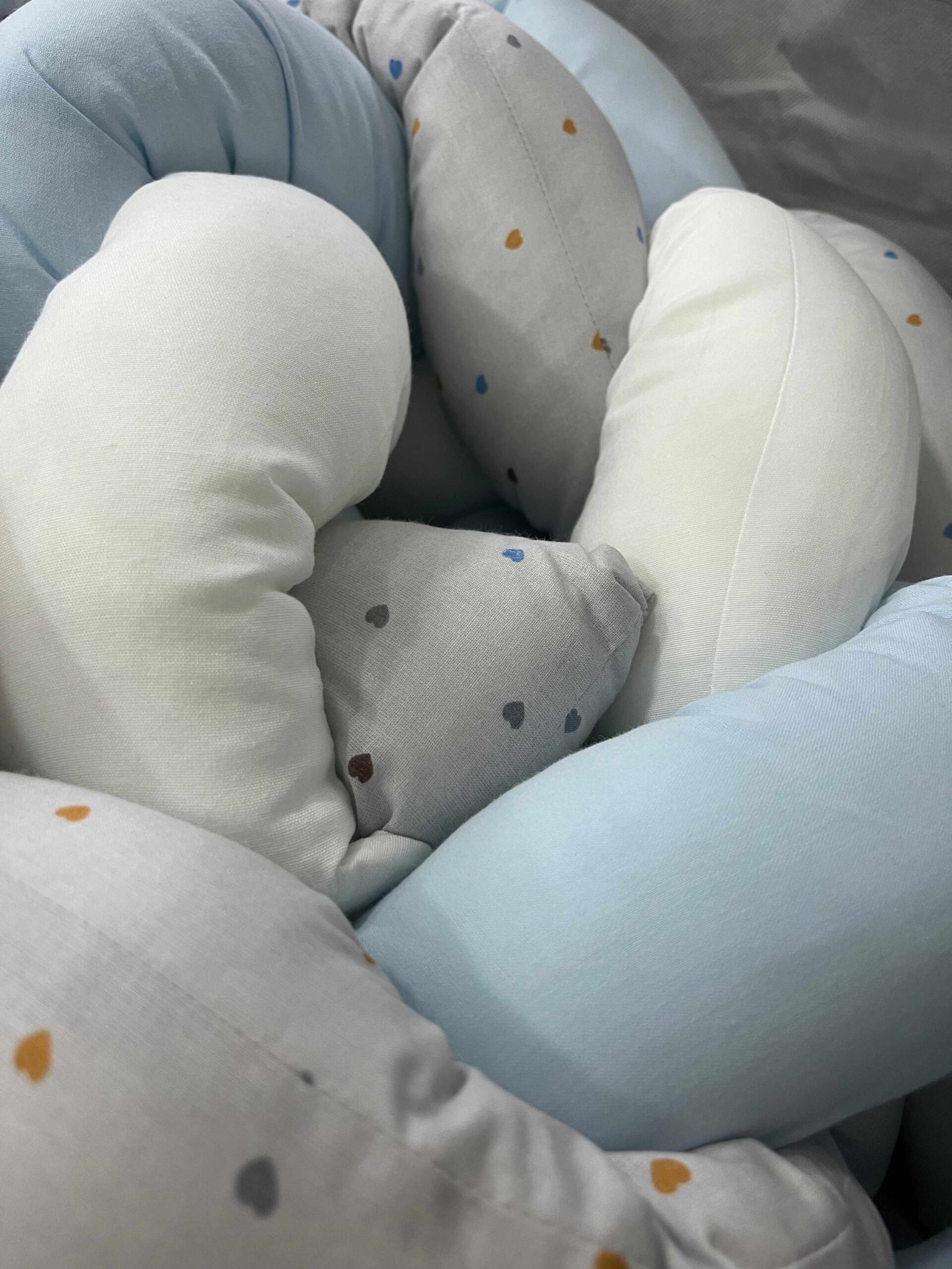 We are happy to provide you with a 35% polyester, 65% cotton product that will ensure ease for mothers and comfort for babies