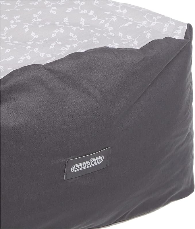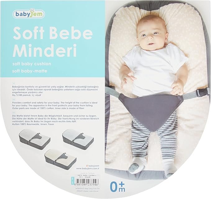 Give your baby a comfortable and safe lying down. The height of the cushion is ideal for your baby. The front attachment helps prevent your baby from falling right and left while lying down. Outer 100% cotton, Inner: fiber