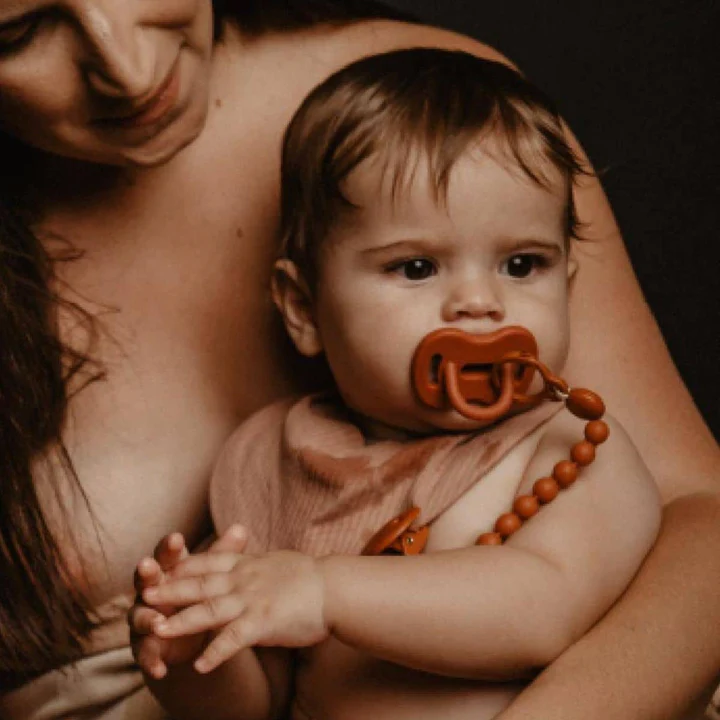 This silicone clip has been designed to attach a soother, to prevent it from falling to the ground, getting dirty or getting lost.